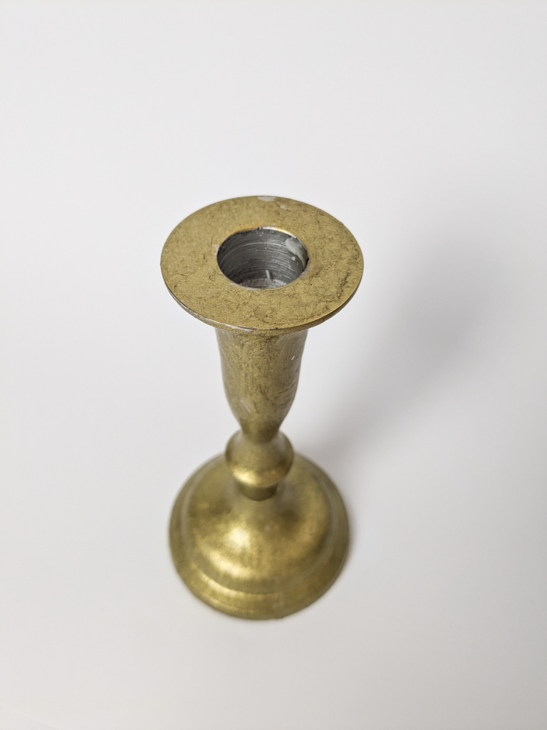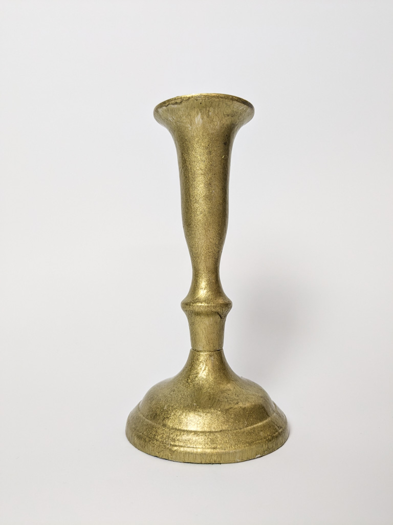 Kisméretű, arany színű gyertyatartó, szálas gyertyához.