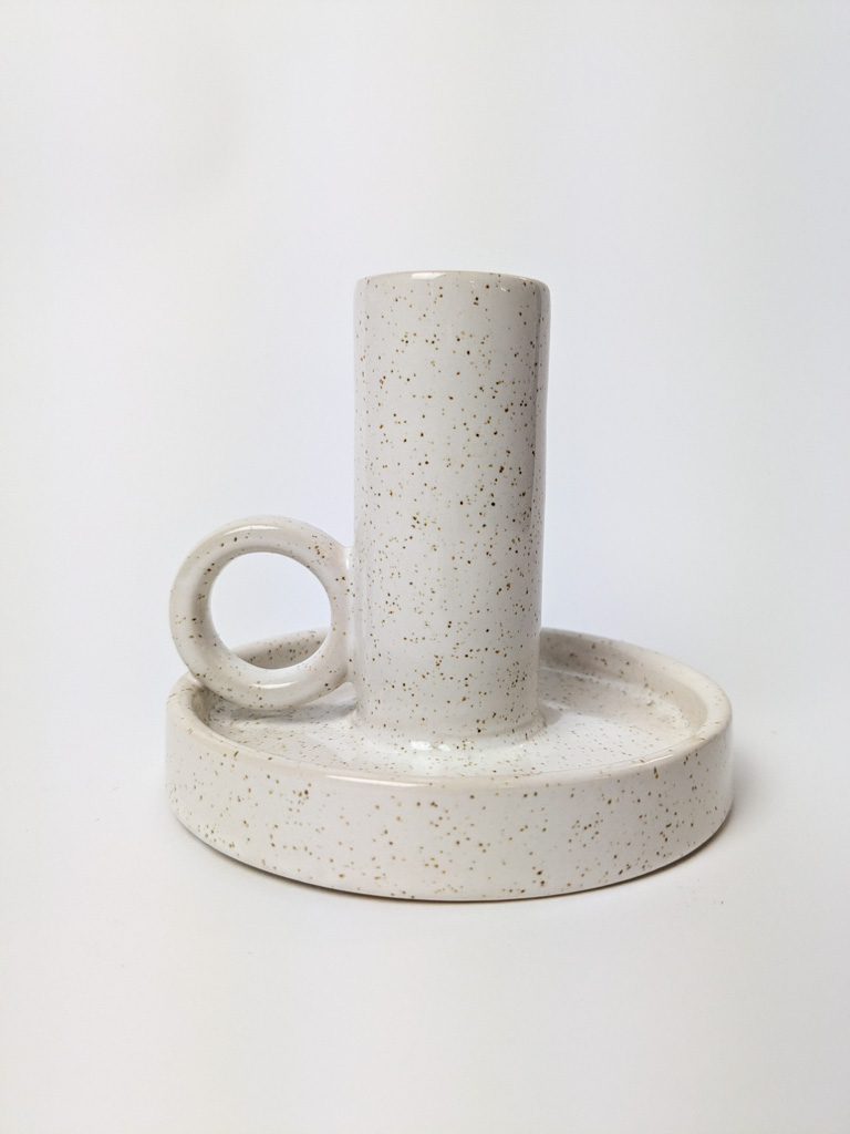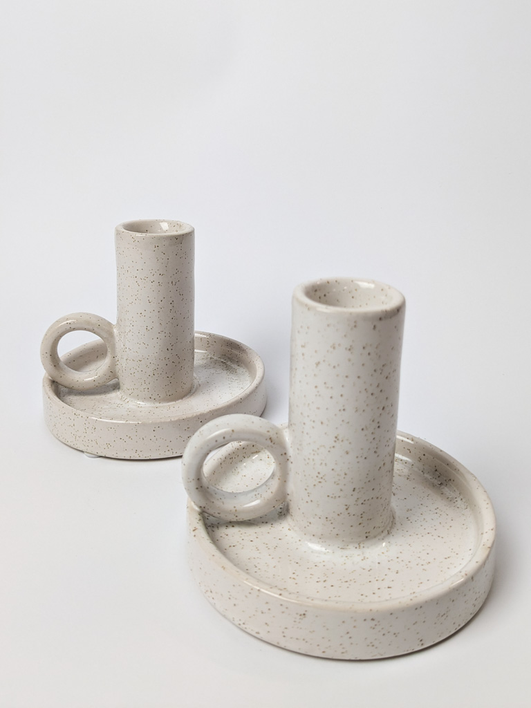 Bézs színű, kerámia gyertyatartó, szálas gyertyához.