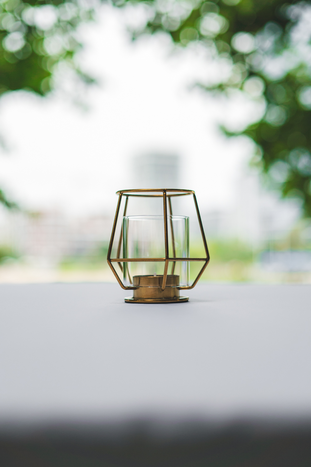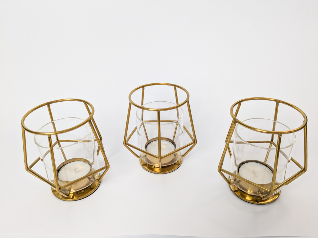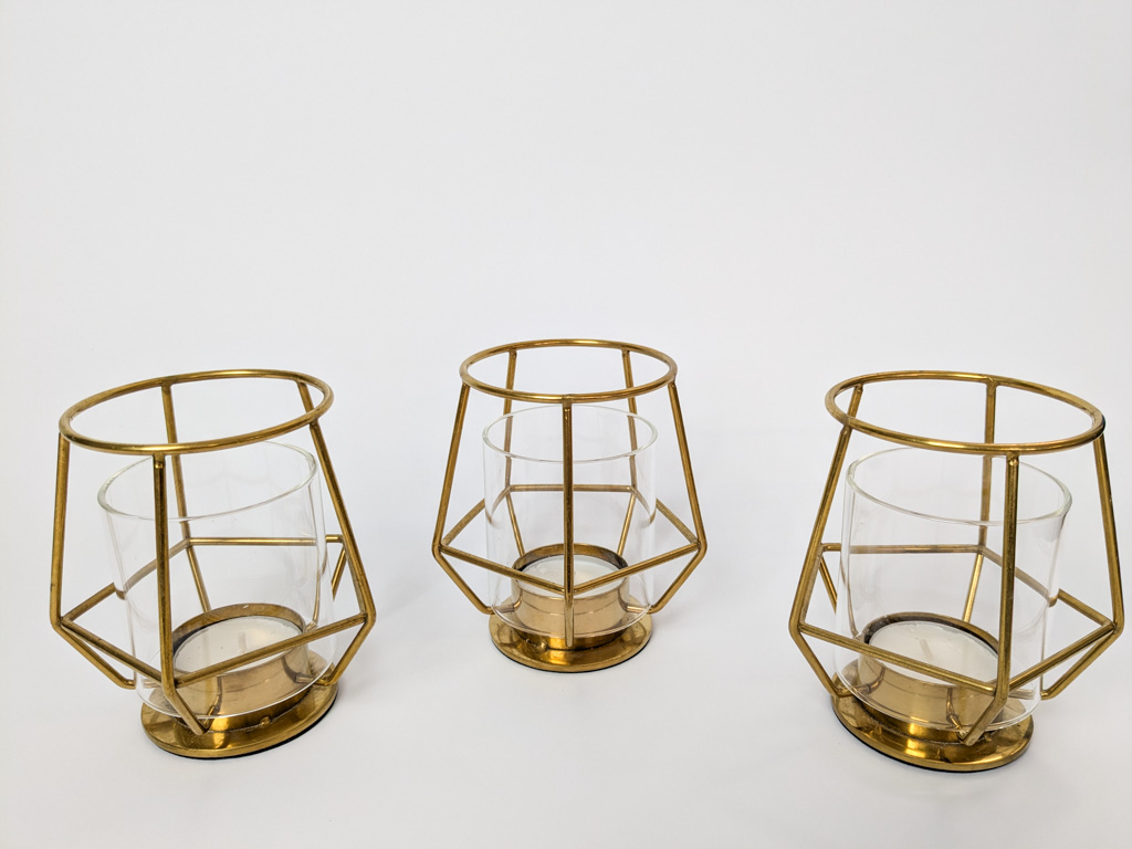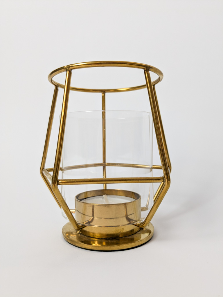 Arany színű, geometrikus teamécsestartó.