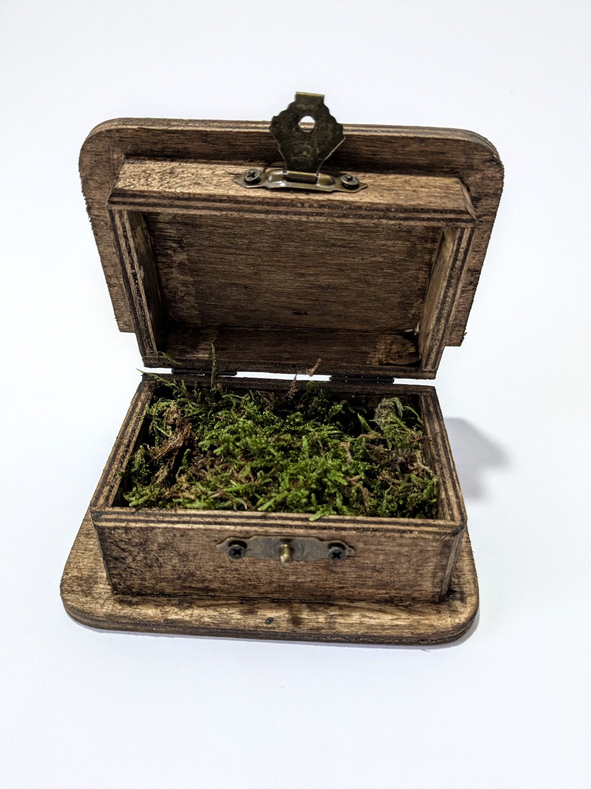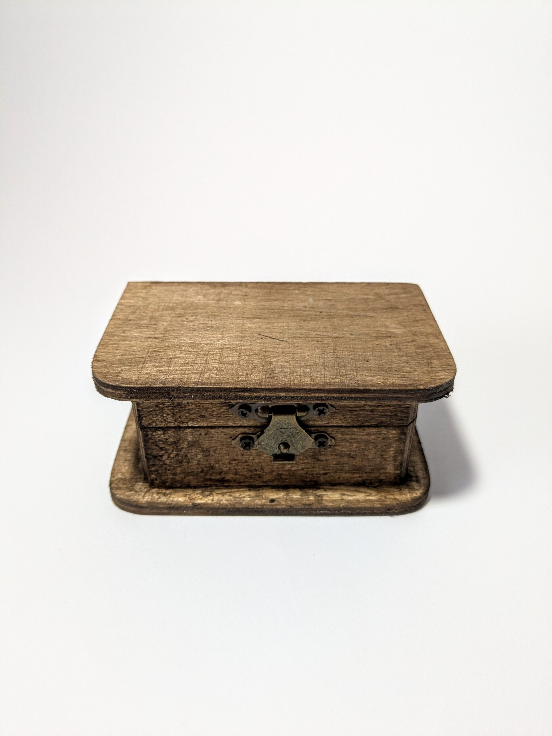 Sötétbarna, fa gyűrűtartó doboz.